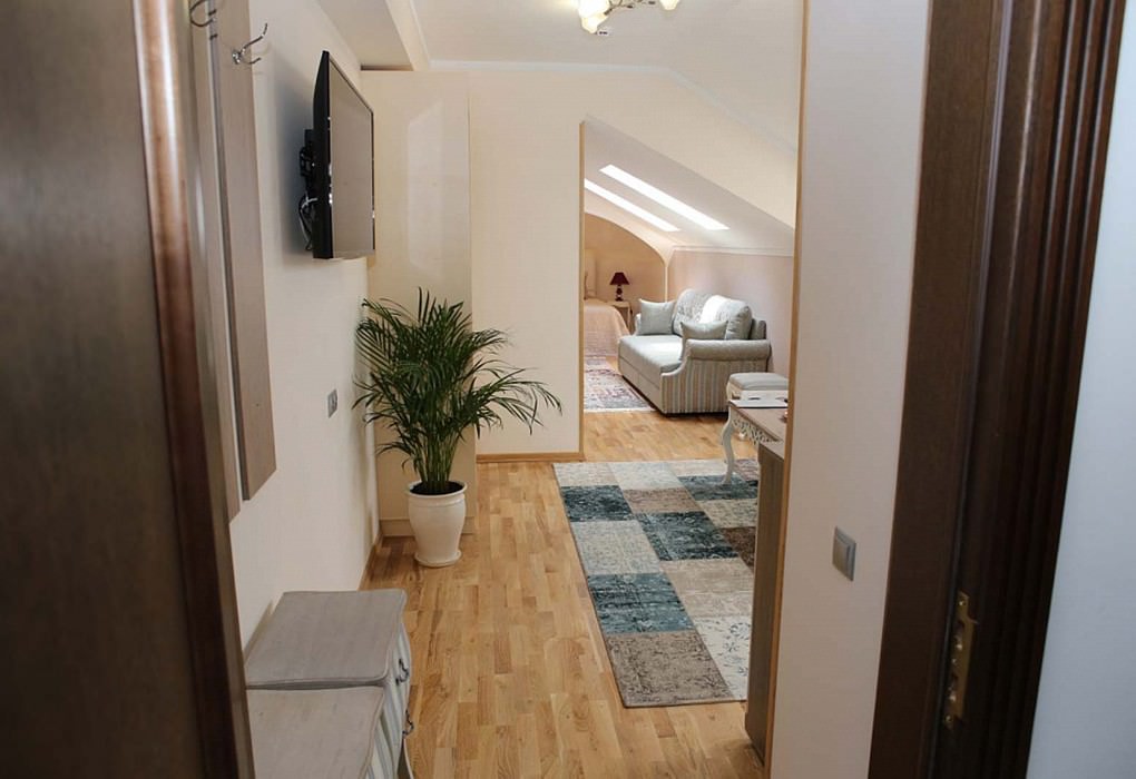 Площадь номера - 39 кв.м. 1 комната. 2 осн. места. В номере: холодильник; сплит-система; спутниковое телевидение; телефон; душ; туалет; фен; электрочайник; сейф; туалетные принадлежности; микроволновая печь; 2-спальная кровать; диван. 2 доп. места: Раскладной диван - может быть установлена без ограничений по возрасту .