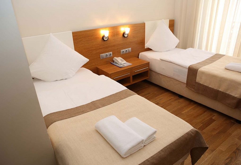 Площадь номера - 15 кв.м. 1 комната. 2 осн. места. В номере: холодильник; сплит-система; спутниковое телевидение; телефон; душ; туалет; фен; электрочайник; сейф; туалетные принадлежности; 1-спальные кровати.